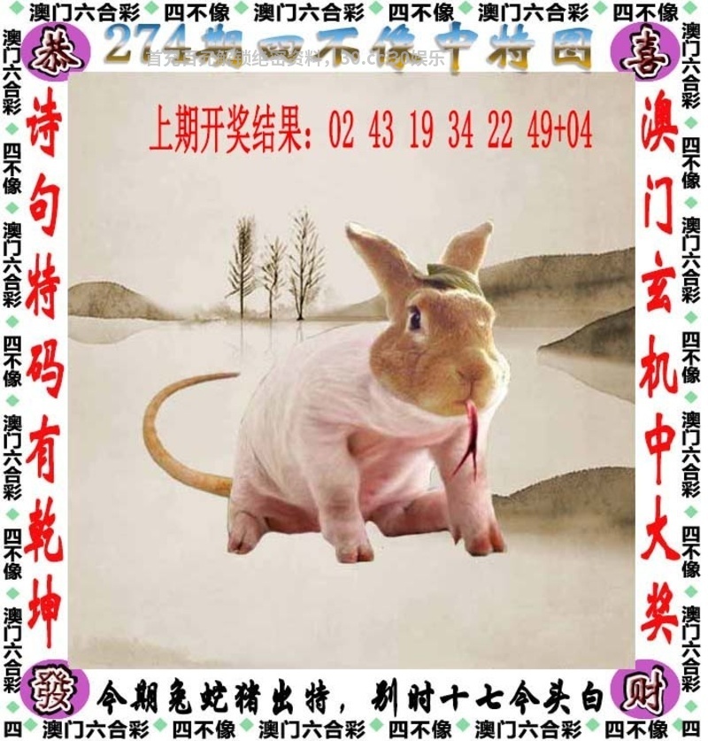 274期:单╠牛猪鸡蛇╣双╠狗虎猴马╣开:狗44中 |
